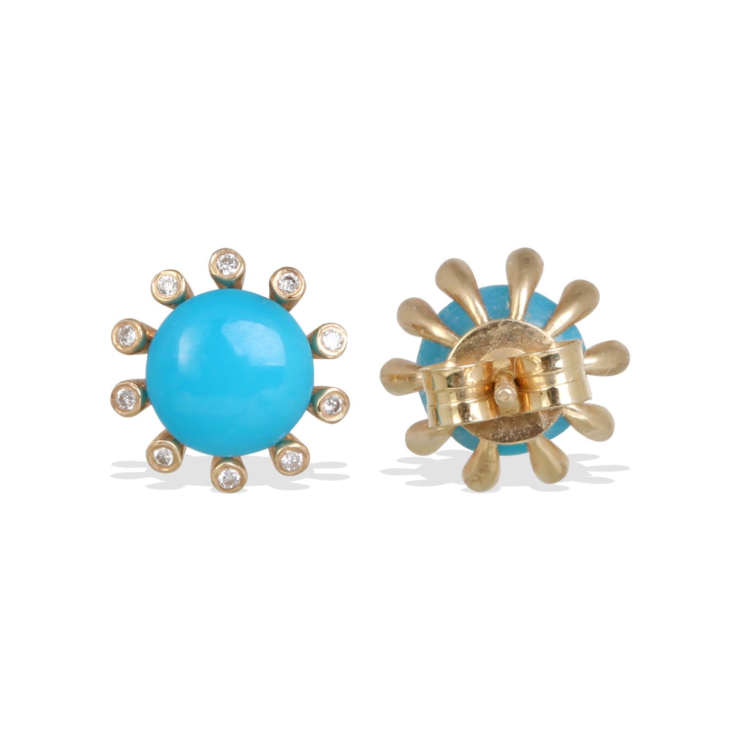 Turquoise Floral 14K Gold Pendant with Diamonds
