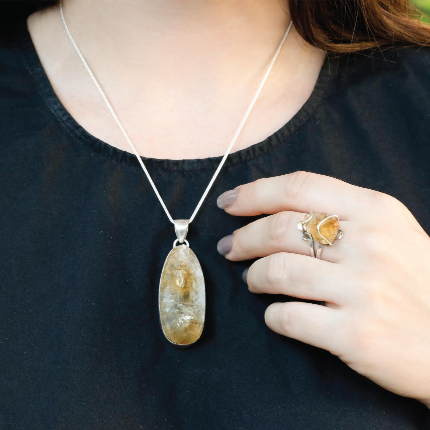Enormous oval shaped raw citrine stone pendant