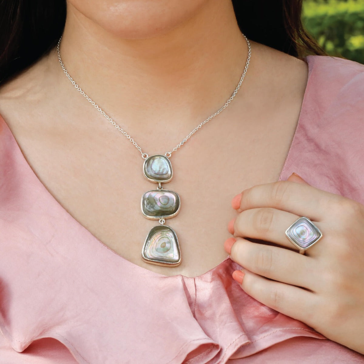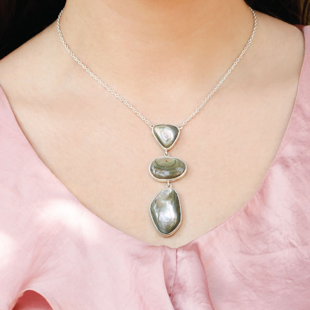 Abalone 3 step sterling silver pendant