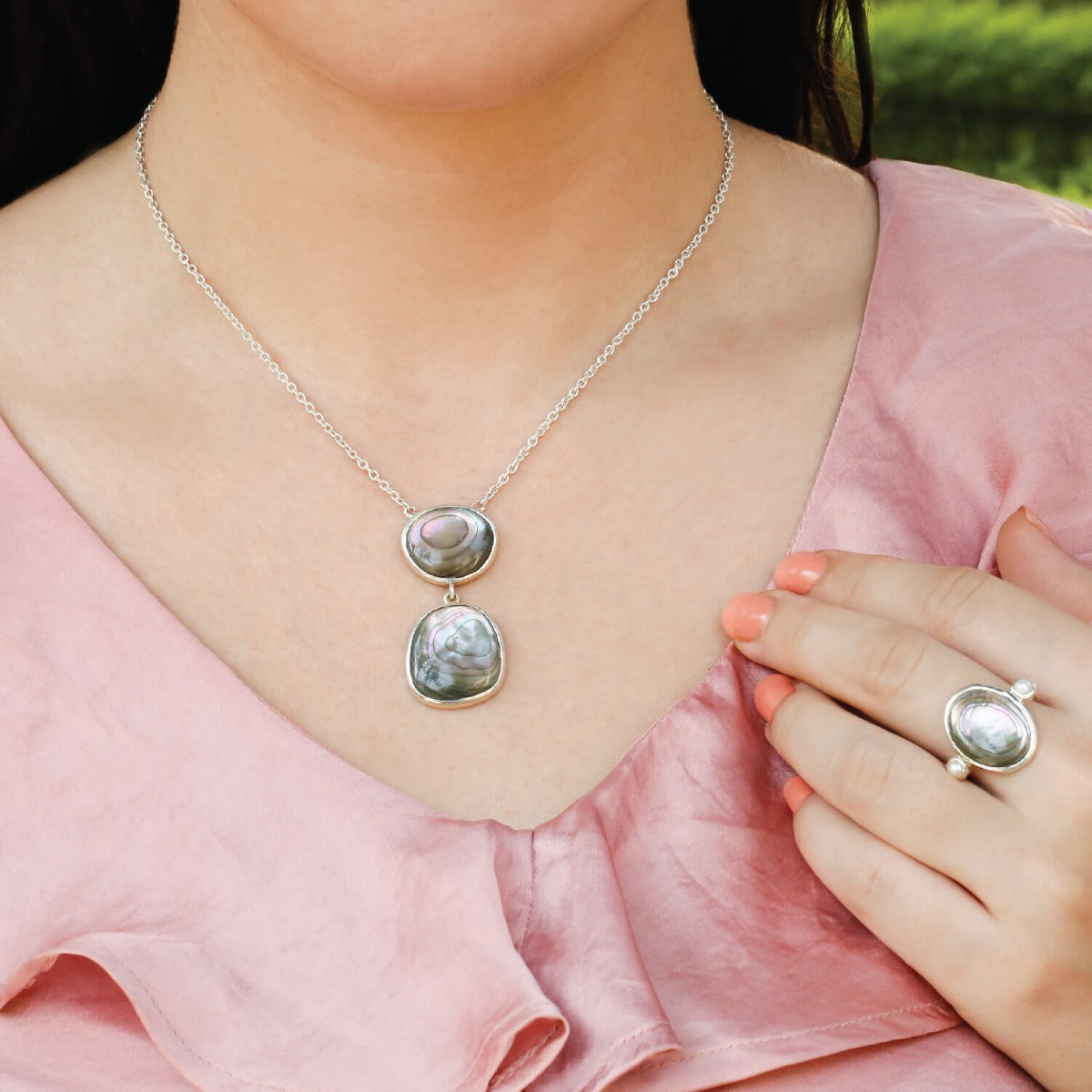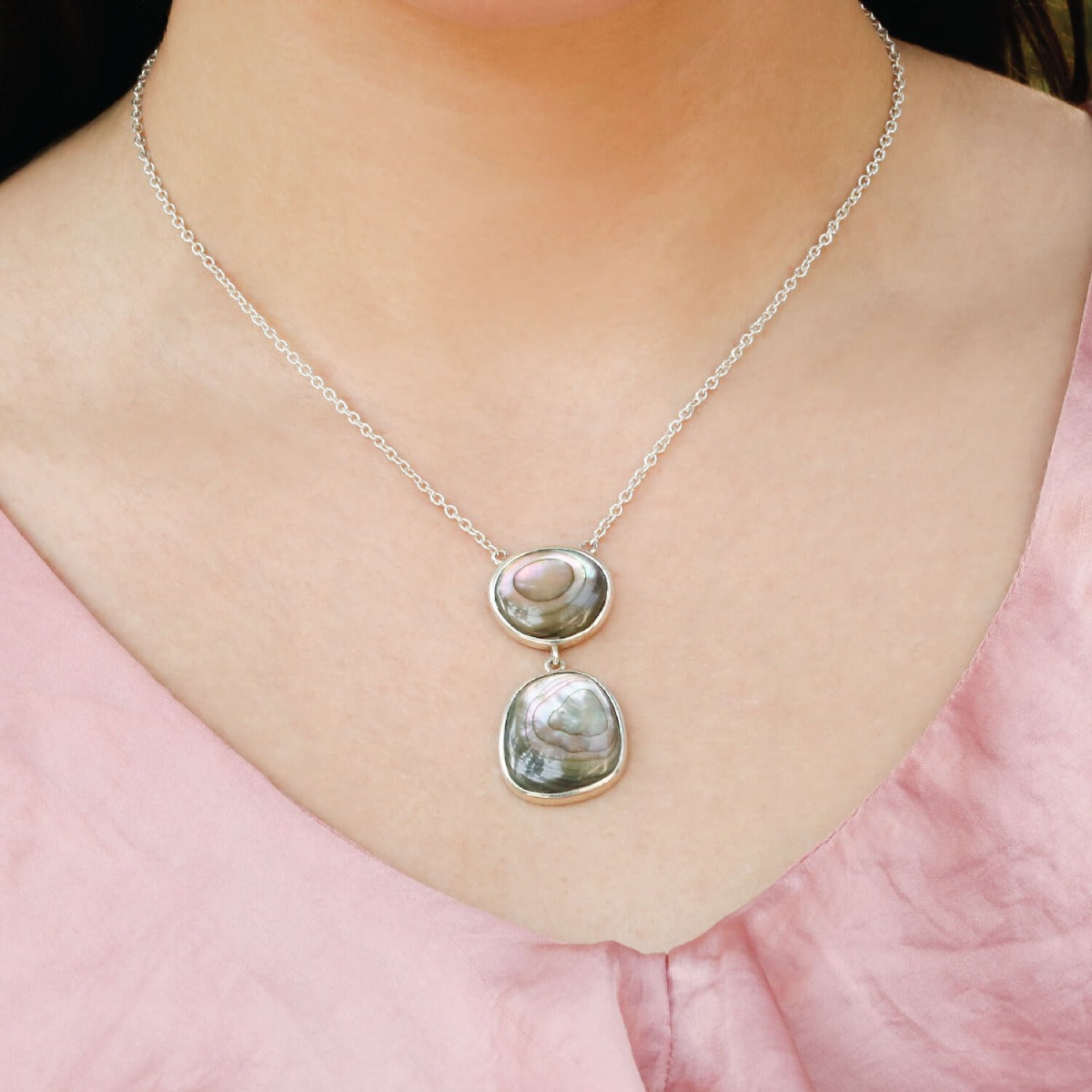 Twin abalone silver pendant