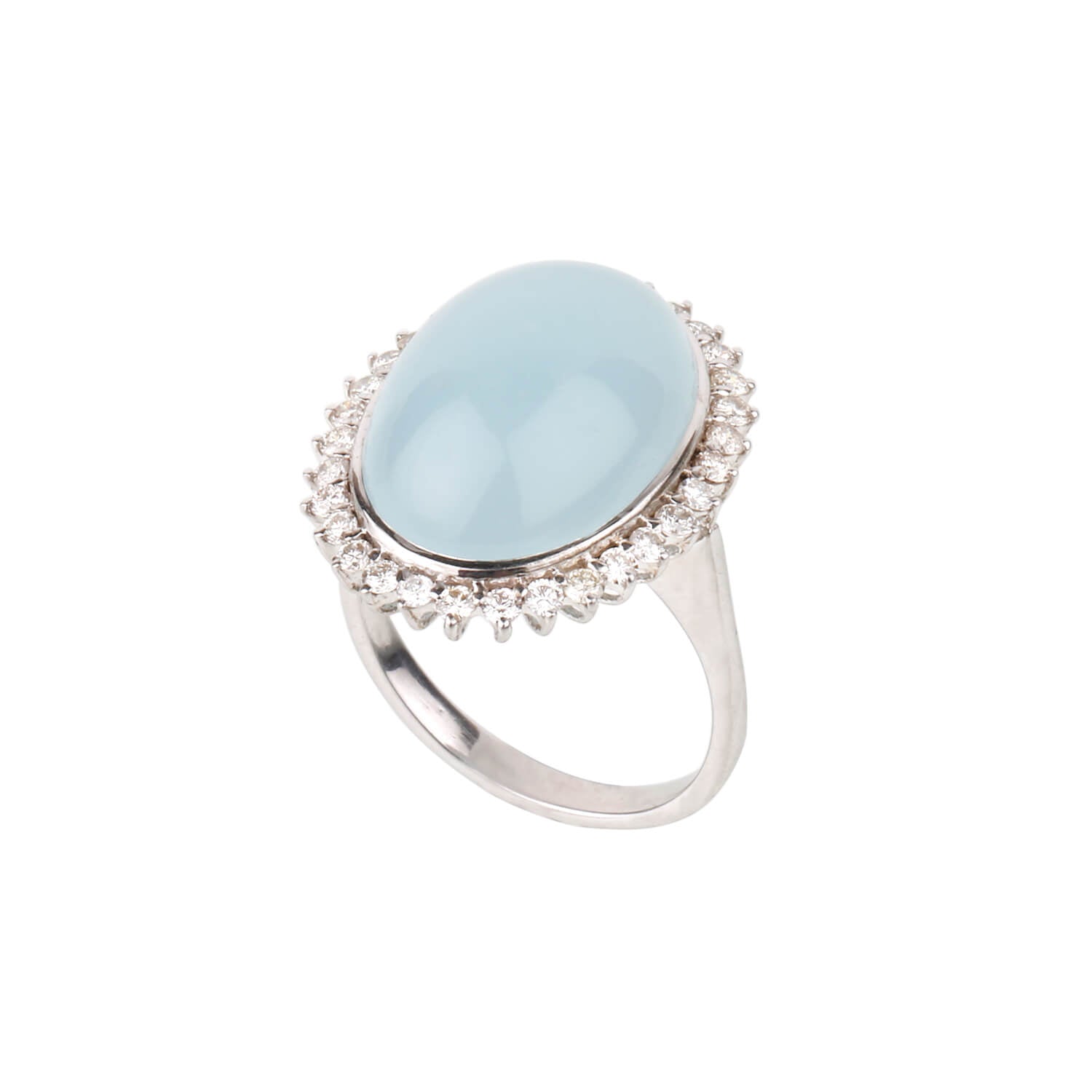 Oval Cabochon Silver 925 Aquamarine with Diamonds Ring