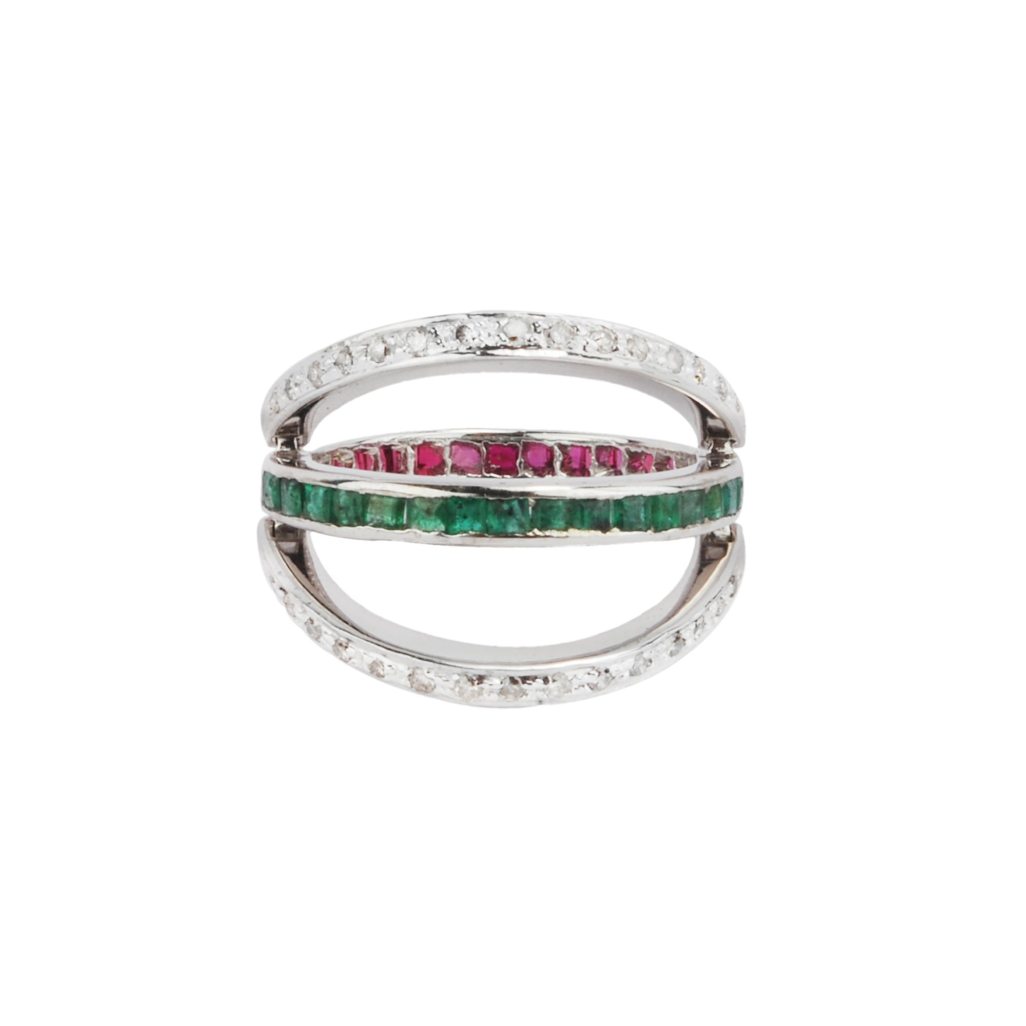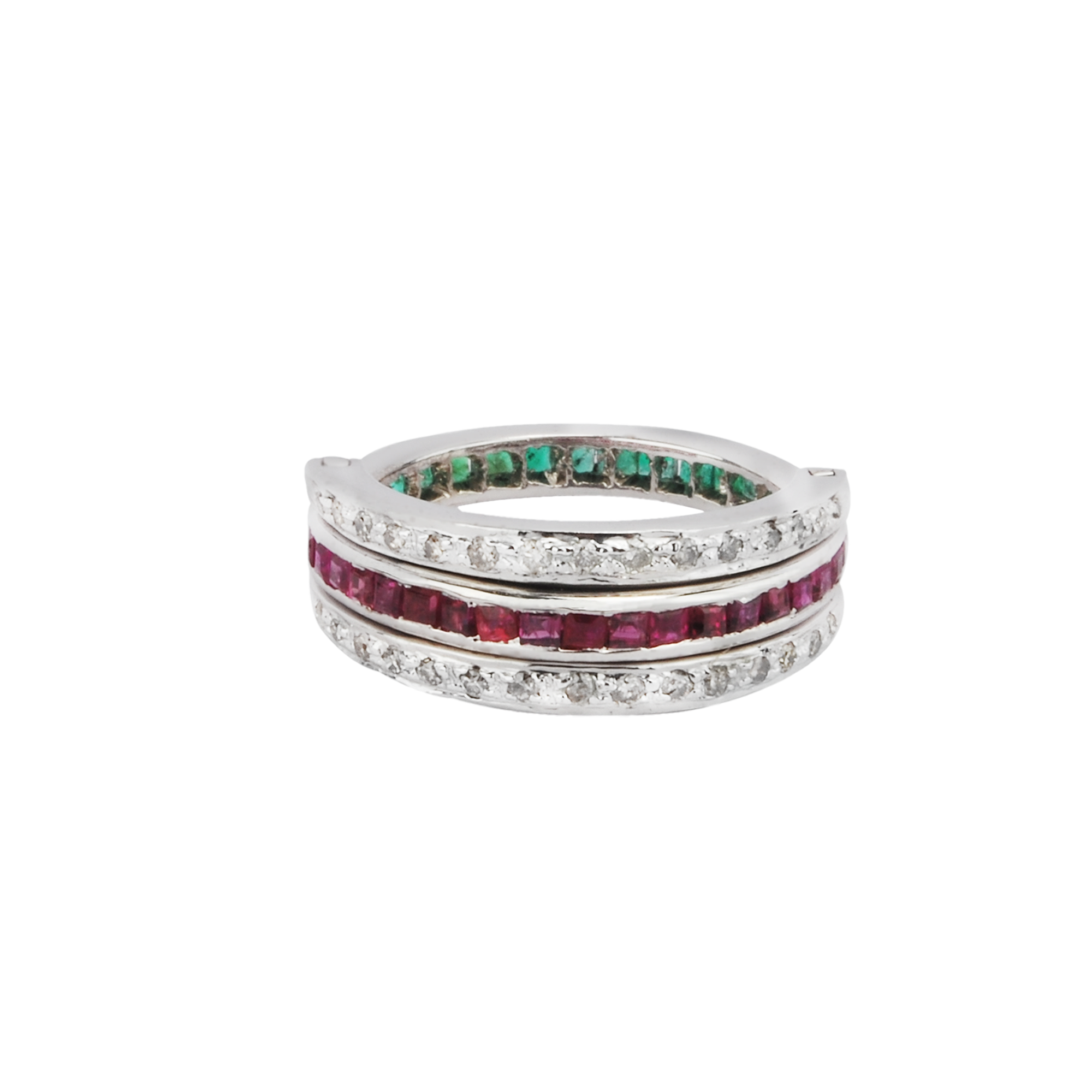 Stackable Silver 925 Ring with Ruby, Emerald, and Diamonds