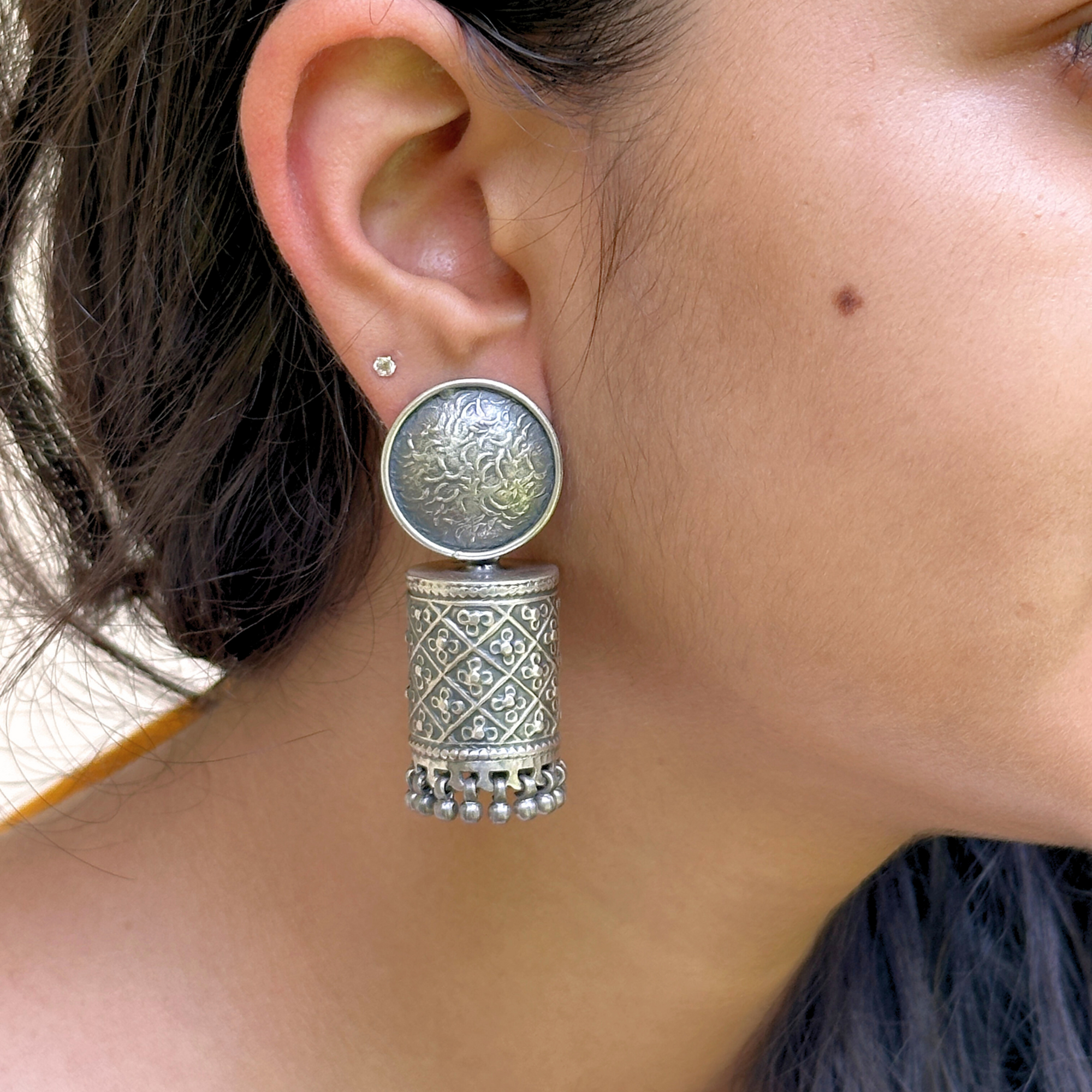 Peacock Turquoise and Coral Boho Sterling 925 Silver Earrings